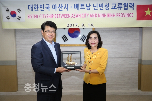자매도시 베트남 닌빈성 인민위원회 서기(응웬 티 탄)를 비롯한 대표단이 지난 14일 아산시(시장 복기왕)를 공식 방문했다.