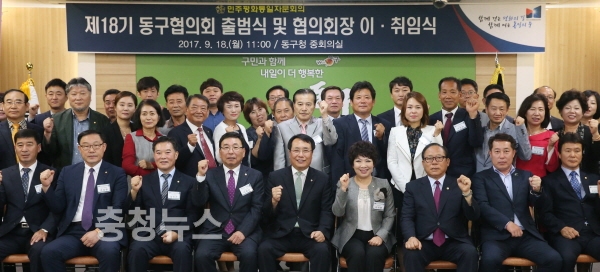 대전 동구(구청장 한현택)는 18일 민주평화통일자문회의 제18기 동구협의회 출범식 및 협의회장 취임식(이희관)과 제17기 협의회장 이임식(남진근)을 가졌다.