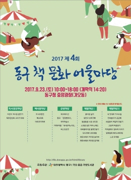 대전 동구(구청장 한현택)는 독서의 달을 맞이하여 오는 23일 구청 중앙광장에서‘책으로 이끌림 미래로 두드림’이라는 주제로 ‘책 문화 어울마당’을 개최한다.