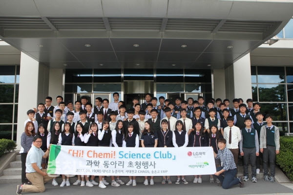 LG화학기술연구원(원장 유진녕)은  19일 오전 초록우산어린이재단 대전지역본부(본부장 박미애)와 함께 “Hi! Chemi!(하이케미) Science Club" 참여 고등학교 3개 과학 동아리와 연구원 초청행사를 실시했다고 밝혔다.