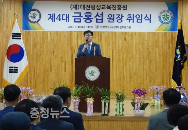 금홍섭 대전평생교육진흥원장은 19일 취임식에서 “평생교육진흥 정책 내용이나 패러다임의 변화가 필요하다”고 목소리를 높였다.