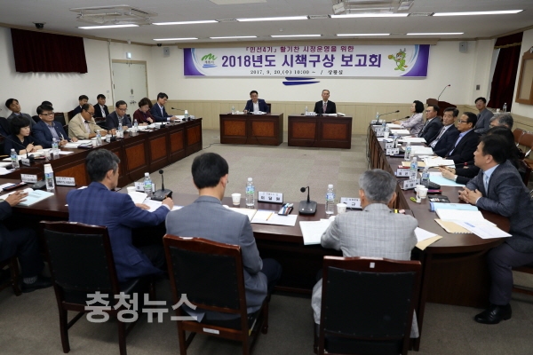 이날 보고회에서는 2018년도에 추진할 신규시책, 보완시책에 대한 보고와 정책자문위원의 시책에 대한 자문 등 내년도 시책에 대해 심도 있는 논의를 진행했다.