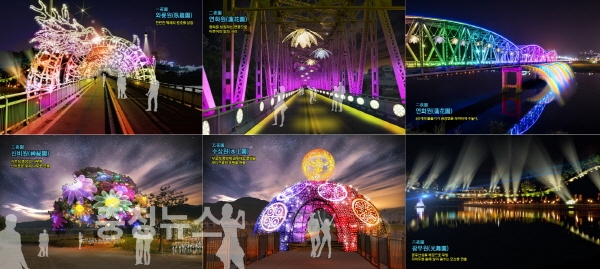 먼저 금강교에 설치될 와룡원에는 찬란한 백제의 왕조를 상징하는 용을 형상화한 일루미네이션 터널이 설치되며, 금강교 철교 부분에는 다양한 연꽃 조형물과 분수를 활용한 연화원이 아름다움을 더할 전망이다.