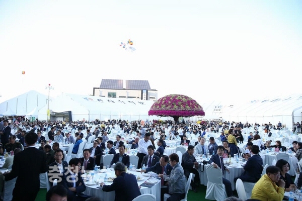 안희정 충남도지사의 개막 세레머니로 건배 제의가 이어졌으며 빛과 움직임이 예술과 결합된 3D키네틱 공연이 화려하게 펼쳐졌다. 충남소년․소녀합창단과 ‘행복을 주는 사람’ 합창을 끝으로 공식행사가 성황리에 마무리 됐다.