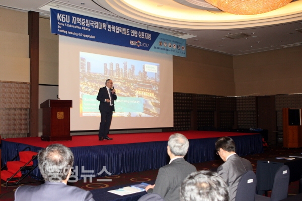 한밭대 이재흥 산학협력단장이 ‘4차 산업혁명 시대의 대학 교육과 지역중심국립대학 산학협력벨트’를 주제로 기조발표를 하고,