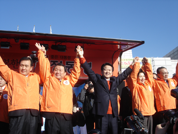 대통합민주신당 정동영 대선 후보가 첫 유세지로 대전역을 방문" 당선후 임신 출산,육아,보육 모두 국가가 책임 대학 입시 폐지를 주장하고 대통령이 되겠다며 지지를 당부했다.