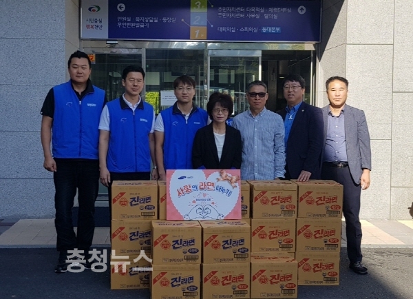 이종담 의원의 주선으로 시작된 사랑의 라면 전달식은 지난 21일 불당동행정복지센터에서 열렸으며, 이 자리에서 삼성SDI(주) 직원은 준비한 라면 20박스를 불당동장에게 전달했다.
