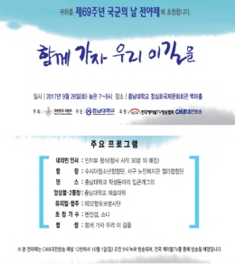 국방부 주최, 충남대 백마사회공헌센터 주관으로 이달 26일 오후 7시, 정심화국제문화회관 백마홀에서 ‘함께 가자 우리 이 길을’이란 타이틀의 ‘제69주년 국군의 날 전야제’ 행사를 개최한다.