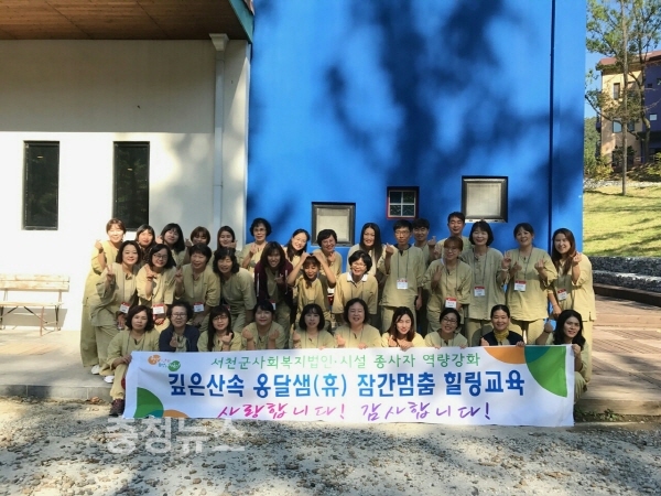 충남 서천군(군수 노박래)은 지난 20일부터 21일까지 사회복지법인 시설 종사자 60명을 대상으로 힐링워크숍 ‘휴[休], 잠[잠깐멈춤]’을 실시했다.