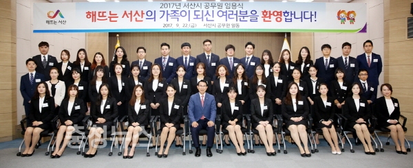 서산시의 새내기 공무원들이 공직사회에서 힘찬 첫 발자국을 내딛었다.서산시는 22일 시청 대회의실에서 신규공무원 임용식을 개최했다.