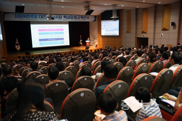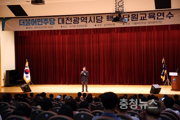 더불어민주당 대전광역시당(위원장 박범계)이 지난 23일 오후 서구청 대강당에서 핵심당원 교육연수를 실시했다.