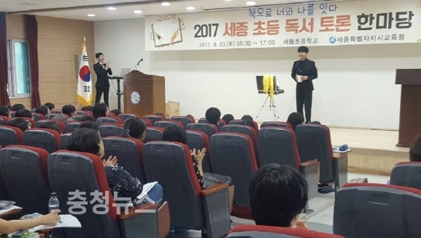 세종시교육청(교육감 최교진)은 23일 새뜸초등학교에서 관내 초등학교 5, 6학년 희망 학생 80여 명을 대상으로 독서 경험 공유를 통한 적극적 독서습관 함양을 위해 책으로 소통하는 축제 ‘세종 독서토론 한마당’을 개최했다.