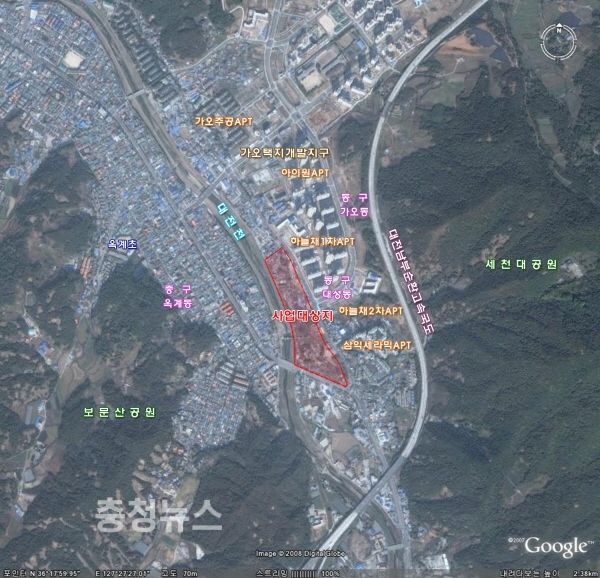 대성지구는 대성동 164번지 일원의 70,106㎡의 면적에 988세대의 공동주택을 건립 계획인 지역으로 그동안 사업성 부족으로 실시계획인가가 취소되기도 했으나, 최근 대전시가 가오동길 확장공사를 추진함에 따라 사업이 재추진되어 지난 2015년 5월 도시개발구역 지정(변경) 및 개발계획(변경)수립고시 이후 이번 실시계획 인가에 이르게 되었다.