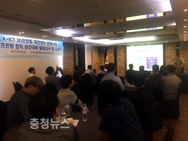 ‘K-ICT 3D프린팅 대전지역 센터사업’의 일환으로 개최한 이 대회는 대전·충남 지역의 학생, 주민 등을 대상으로 3D프린팅 기술을 기반으로 하는 아이디어와 제품의 발굴, 로봇, ICT기술 등과의 융합형 창작문화 확산을 위해 마련됐다.