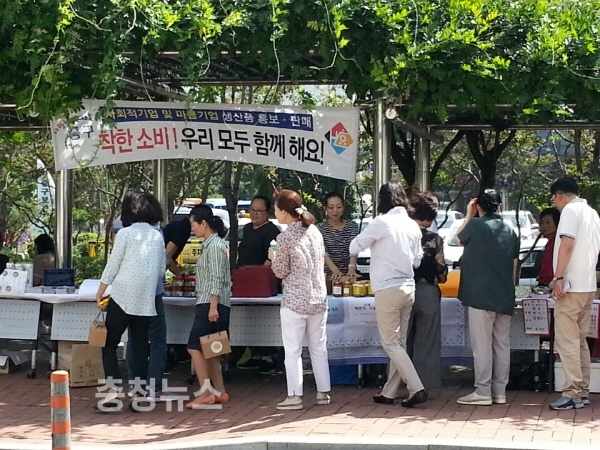 이번 직거래 장터는 구청 내 등나무쉼터에서 사회적경제기업(사회적기업,마을기업)제품 홍보와 판로확보 지원을 통한 자립기반 제공을 위해 마련됐다.