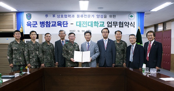 대전대(총장 이종서)와 육군종합군수학교 병참교육단(단장 이일동 준장)은 26일 자운대 육군종합군수학교 병참교육단에서 상호발전 및 인력양성을 위한 업무협약(MOU)을 체결했다.