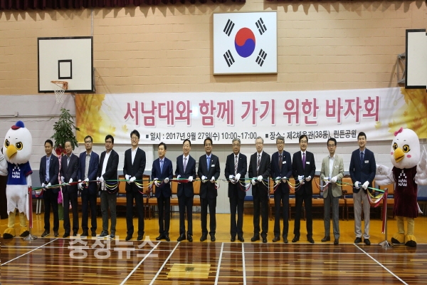 바자회 개회식에는 한남대 이덕훈 총장을 비롯한 교수, 직원들과 설동호 대전시교육감, 김원식 한남대 총장자문위원장, 지영한 CBS대전본부장 등 각계 인사들이 참석해 축하인사를 전했다.