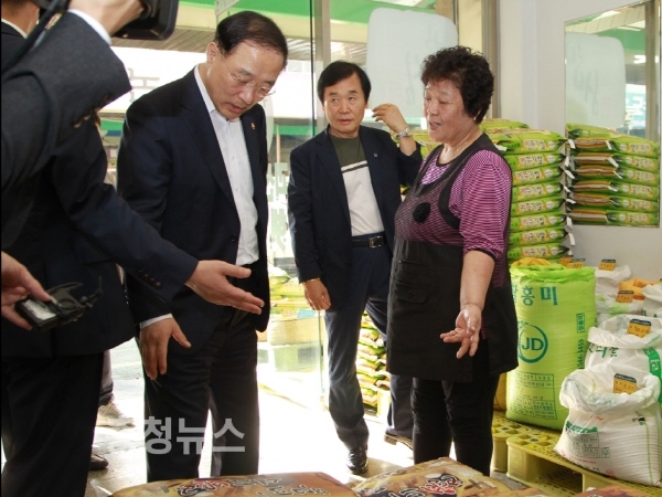 홍 실장은 ’13.4.18일 국무총리실과 1기관 1시장 자매 결연을 맺은 ‘세종시 전통시장’을 방문한 명절 시장경기와 물가를 직접 점검하고, 시장 상인들과 대화의 시간을 가진 뒤, 온누리 상품권으로 직접 물품을 구매했다.