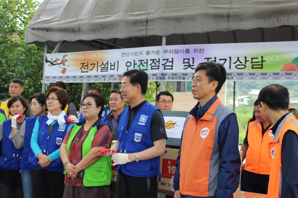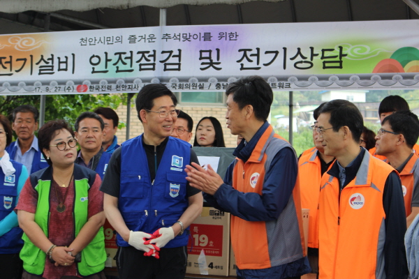 한국전력공사 천안지사(지사장 박기환)는 27일, 양승조 의원실과 충남소비자 공익네트워크와 함께 에너지안전 사각지대 해소를 위해 『추석맞이 전기설비 무상수리 및 전기상담 사회공헌활동』을 실시했다.