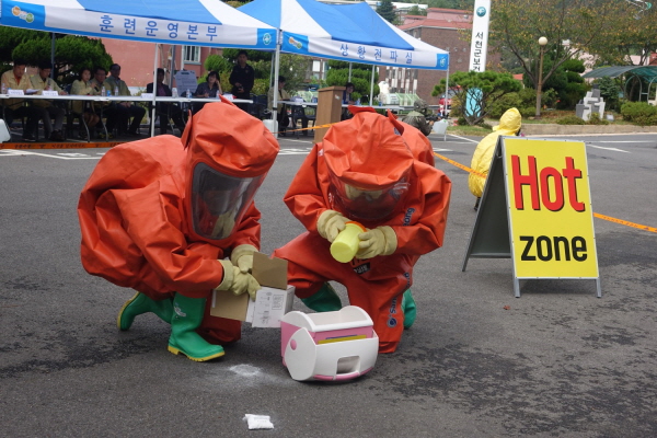 이날 모의훈련은 보건소장 회의에 참석하는 시·군 보건소장들에게 탄저균으로 의심되는 백색가루를 이용한 생물테러 발생을 가상하여 유관기관간 상황전파, 현장 출동 및 통제, 독소다중탐지키트 검사, 환경검체 채취 및 검체 이송, 환경제독과 테러범 검거 등의 과정을 실전처럼 훈련했다.