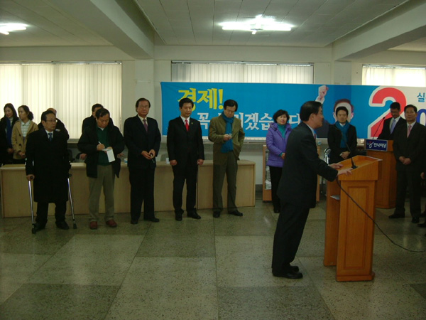 남경필 경기도당위원장은 격려사를 통해 “여러분들이 오늘 이명박 후보를 지지해주시는 것은 어려운 나라경제를 살려달라는 것이 가장 큰 이유일 것”이라며 “오늘 이 용기있는 행동에 진정으로 고맙다는 말씀을 드리고 싶어 여기까지 달려왔다”고 말했다.