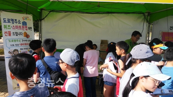 특히, '우리집 도로명주소 쓰기', 도로명주소 앱인 '주소찾아' 설치 이벤트를 실시해 도로명주소 표기법에 맞게 주소를 작성하고 '주소찾아' 앱을 설치한 군민 및 관광객에게 도로명주소 홍보물품을 제공해 인기를 얻었다.