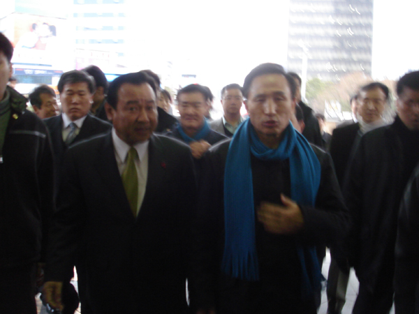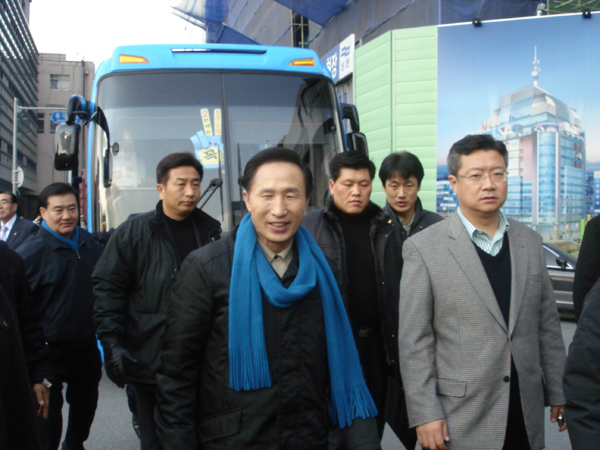 한편 대전시청 방문은 앞전 행사에서 이 후보에게 노인들이 사인을 요구하는 바람에 행사가 1시간 가량 지연돼, 대전시청 방문을 포기하고 청주로 이동했다.