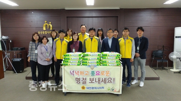 29일 대전 둔산 종합사회복지관 방문해 쌀 등 위문품 전달