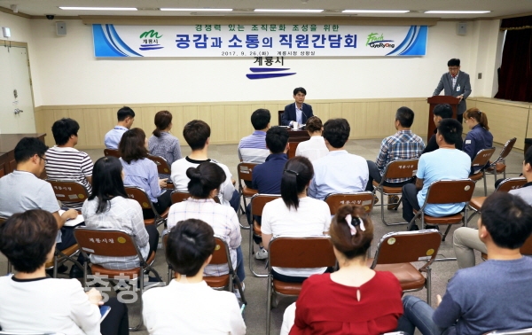 충남 계룡시(시장 최홍묵)는 지난 26일 시청 상황실에서 전직원을 대상으로 하는 ‘공감과 소통의 직원간담회’를 가졌다.