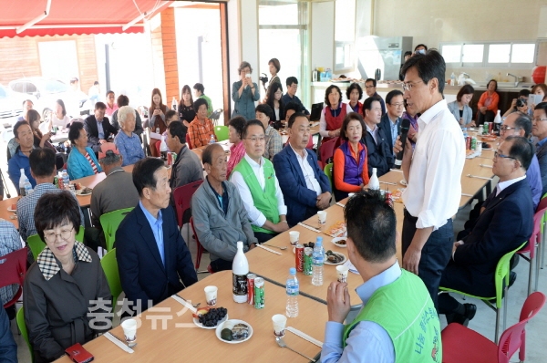 이어 안 지사는 토마토 재배 및 농장 체험장으로 이름을 얻고 있는 청양 중뫼마을로 자리를 옮겨 주민들과 식사를 함께하며 대화를 나눴다.