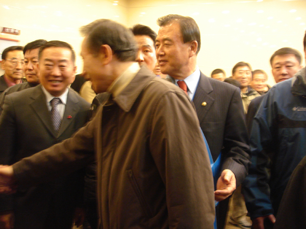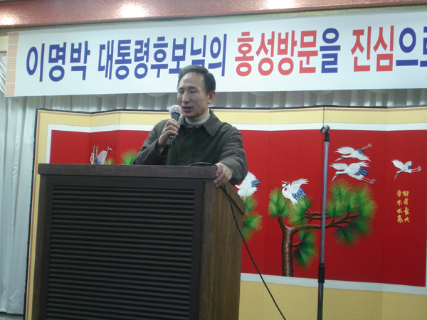 이 후보는 태안 앞바다 사고 현장과 홍성 농업 정책 공약 발표회을 위해 충남 홍성 재향군인회관을 방문,농민들의 농가부채 탕감 등을 약속했다