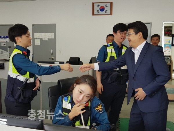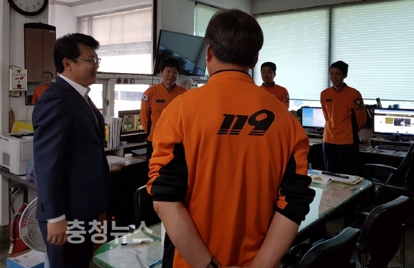 복기왕 아산시장이 4일 민족고유의 명절 추석 당일 비상근무를 실시하고 있는 아산소방서를 비롯한 관내 주요 상황근무실을 방문해 따뜻한 격려와 함께 빈틈없는 운영을 부탁했다.