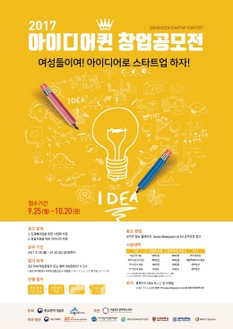 세종창조경제혁신센터(센터장 최길성)는 지난달 25일부터 오는 20일까지 ‘2017 아이디어퀸 창업공모전’을 개최한다고 10일 밝혔다.