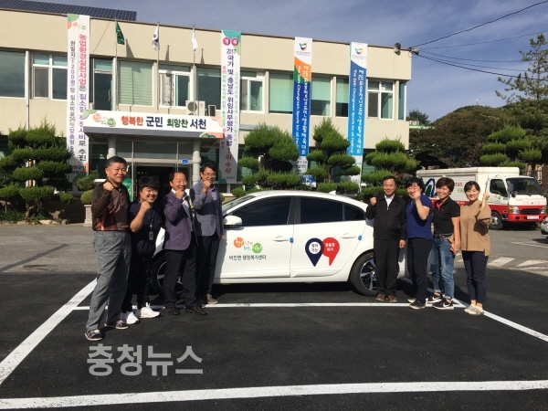 군은 이에 앞서 지난 7월 한산면, 마산면, 판교면 등 3개 면에 보급한 가솔린 차량(스파크1.0)에 이어 읍면동 찾아가는 복지 서비스 강화를 위해 전기자동차 보급을 추진했다. 이로써 촘촘한 복지 실현을 위해 빠르게 이동할 수 있는 수단을 확보하게 되었으며 이번에 보급된 4개 읍면에 완속충전기도 설치할 계획이다.