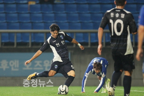 천안시청은 이제 우승을 바라보고 있다. 11일 대전월드컵보조경기장에서 열린 대전코레일과의 경기에서 후반 20분 조이록이 결승골을 넣으며 1:0으로 이겨 승점 49점을 확보했다.