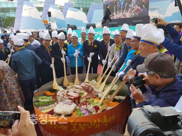 행사장에서는 ▲올해 가을 수확한 전국의 햇수삼중 우수삼을 선발하는 ‘수삼품평회’, ▲일반인 참가자들 중 인삼홍보대사를 선발하는 ‘인삼사랑 아지매 선발대회’, ▲농업인과 소비자가 수확의 기쁨과 건강을 함께 나누는‘인삼 건강비빔밥 나눔 행사(1천인 분)’, ▲ 전국에서 선발 된 36개 팀의 ‘건강 나눔 인삼요리대회’가 열려 인삼의 우수성을 알리고 대중화에 적극 나섰다.