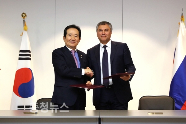 정세균 의장, 러 하원의장과 ‘공동성명’ 발표