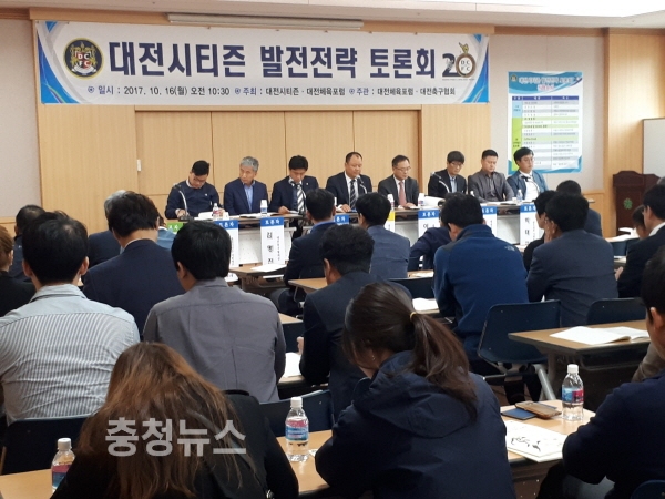 대전시티즌(대표이사 윤정섭)은 대전체육포럼(상임대표 진윤수)과 공동주관으로 16일 오전 시청 세미나실에서‘대전시티즌 발전전략 토론회’를 개최했다고 밝혔다.