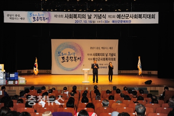 충남 예산군은 16일 예산군 문예회관에서 예산군사회복지협의회(회장 정낙규) 주관으로 제18회 사회복지의 날 기념식을 개최했다고 밝혔다.