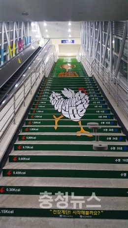 충남 계룡시(시장 최홍묵)보건소는 건강환경 조성과 올바른 건강정보 제공을 위해 건강계단과 건강 정보판을 설치해 시설을 이용하는 지역주민에게 큰 호응을 얻고 있다.