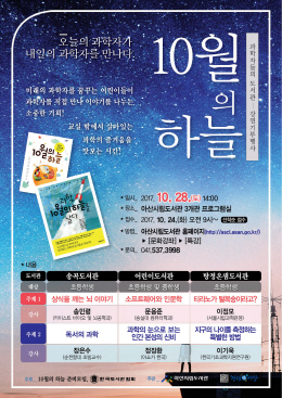 충남 아산시립도서관(관장 권경자)이 이달 28일 과학자들의 도서관 강연기부행사인 ‘10월의 하늘’프로그램을 운영한다.