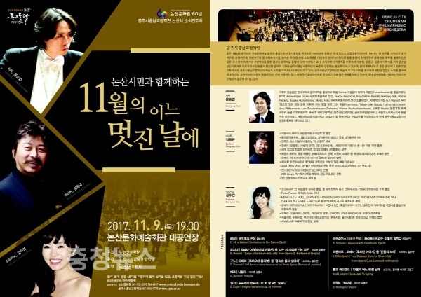 논산시가 후원하고 충남교향악단이 주관하게 된 이번 음악회는 공주시충남교향악단 논산시 순회연주회로써 11월 14일 창립 60년을 맞는 논산문화원의 초청으로 열리게 되었다.
