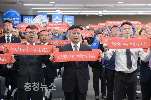 이날 결의대회에서 참석자들은 머리띠를 두르고, 피켓을 흔드는 등 퍼포먼스를 통해 행정수도 개헌에 대한 강한 의지를 표명했다.
