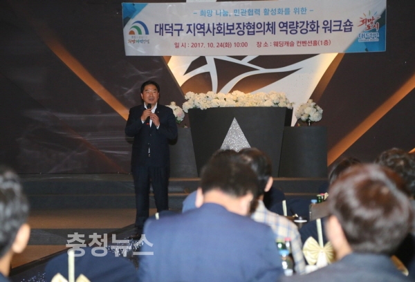 대전 대덕구(구청장 박수범)는 24일 오정동 웨딩캐슬 컨벤션홀에서 희망 나눔과 민관협력 활성화를 위한 ‘대덕구 지역사회보장협의체 역량강화 워크숍’을 개최했다.