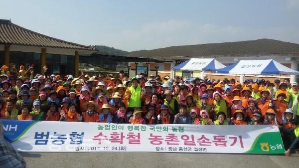 농협중앙회(회장 김병원)는 가을철 수확기를 맞이해 일손부족으로 어려움을 겪고 있는 농업인을 지원하기 위해 24일 충남 홍성군 결성면 일대에서 ‘범 농협 수확철 농촌일손돕기’를 대대적으로 실시했다.