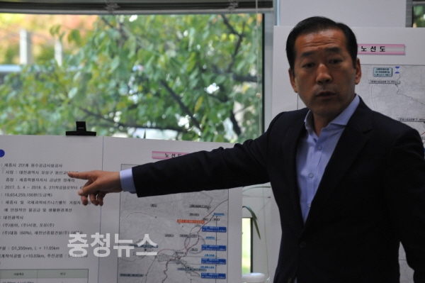 김 의원은 24일 기자회견을 갖고 “세종시 2단계 용수공급시설공사가 시공사의 문제 제기로 공사가 2개월 이상 중단되고 있지만 설계사와 발주처인 상수도사업본부는 설계오류를 인정하지 않고 있다”고 꼬집었다.