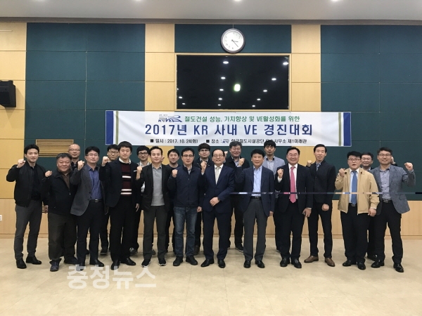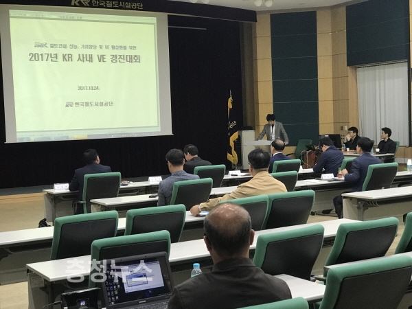 한국철도시설공단(이사장 강영일)은 설계 및 시공 분야에서의 VE 활동을 활성화하기 위해 지난 24일 ‘2017년 KR(공단 영문약칭) 사내 VE 경진대회’를 개최하고, 노반·건축 등 우수사례를 선정해 그 성과를 공유했다고 밝혔다.