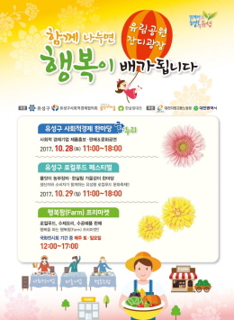 대전 유성구(구청장 허태정)는 이달 28일 국화꽃이 활짝 핀 유림공원 일원에서 2017 유성구 사회적경제한마당「함:누리」를 개최한다.