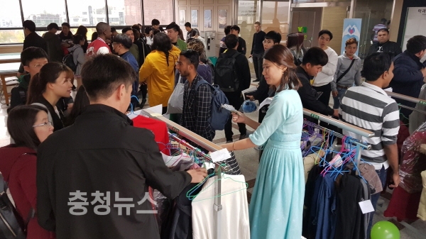 건양대학교(총장 정연주) 국제교육원(원장 정헌식)이 지난 26일 오후 논산 창의융합캠퍼스 건양회관 5층에서 유학생들을 위한 바자회를 개최했다.