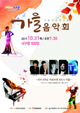장종태 서구청장은 “10월의 마지막 날 서구문화에서 준비한 가을 음악회에 오셔서 소중한 분들과 아름다운 추억 쌓으시길 바란다”고 말했다.